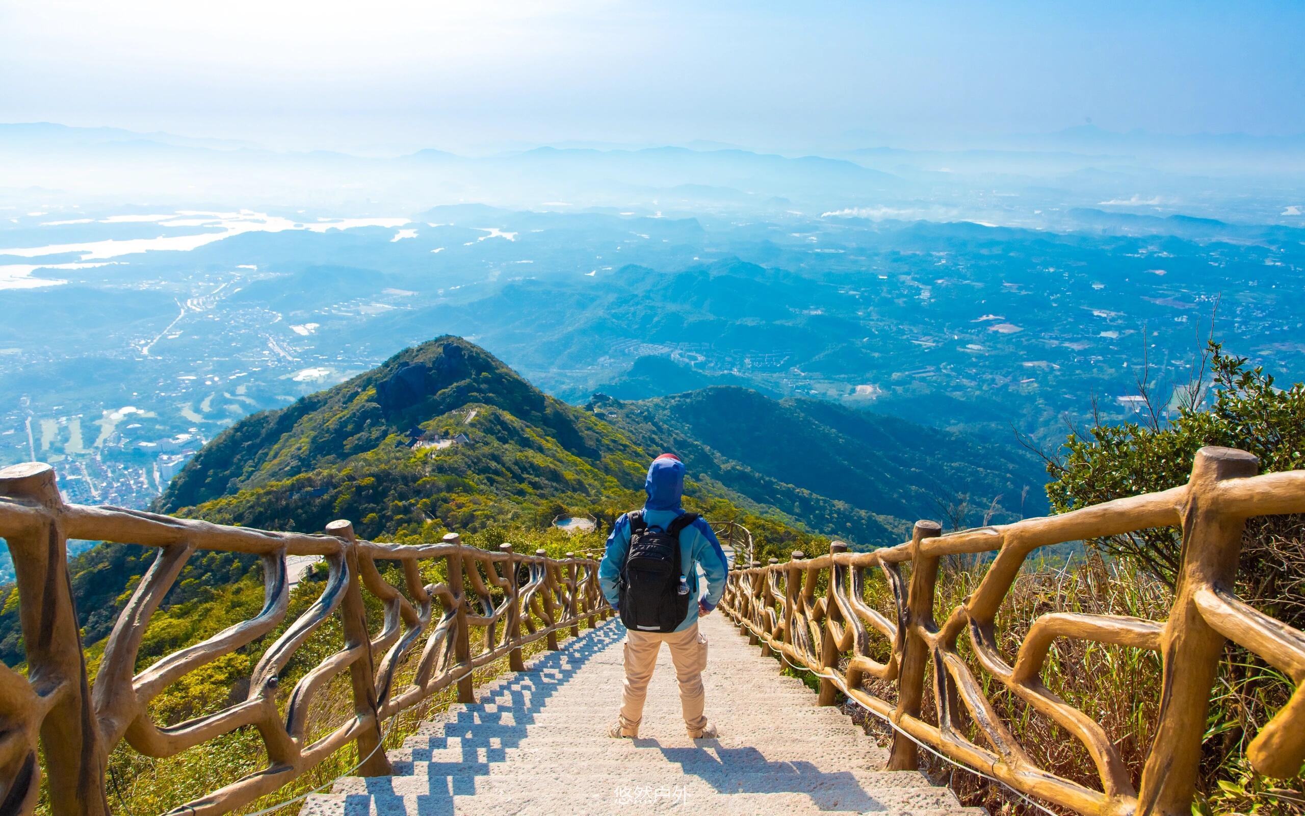 线路概况:全程约15公里,起点罗浮山后山,终点景区大门,上山都是土路有点陡,强度比梧桐山大一点,下山是台阶+水泥路,上山约7公里上坡,下山约8公里下坡,最高峰飞云顶海拔1296米,用时约7小时,
